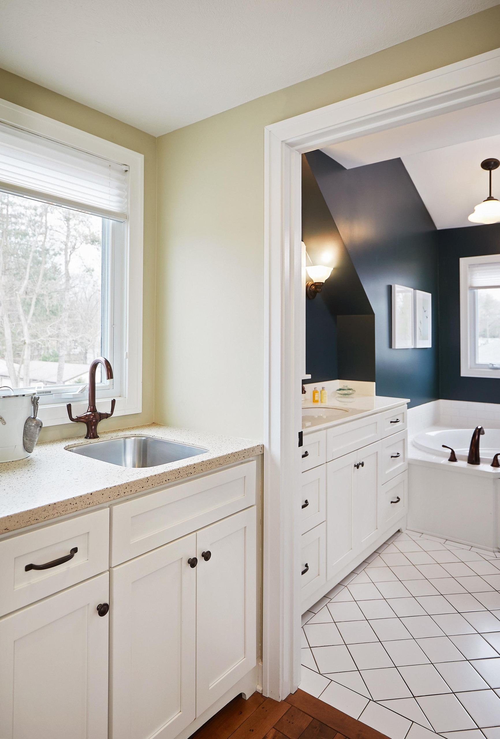 • First floor coffee/wet bar area with sink and mini refrigerator