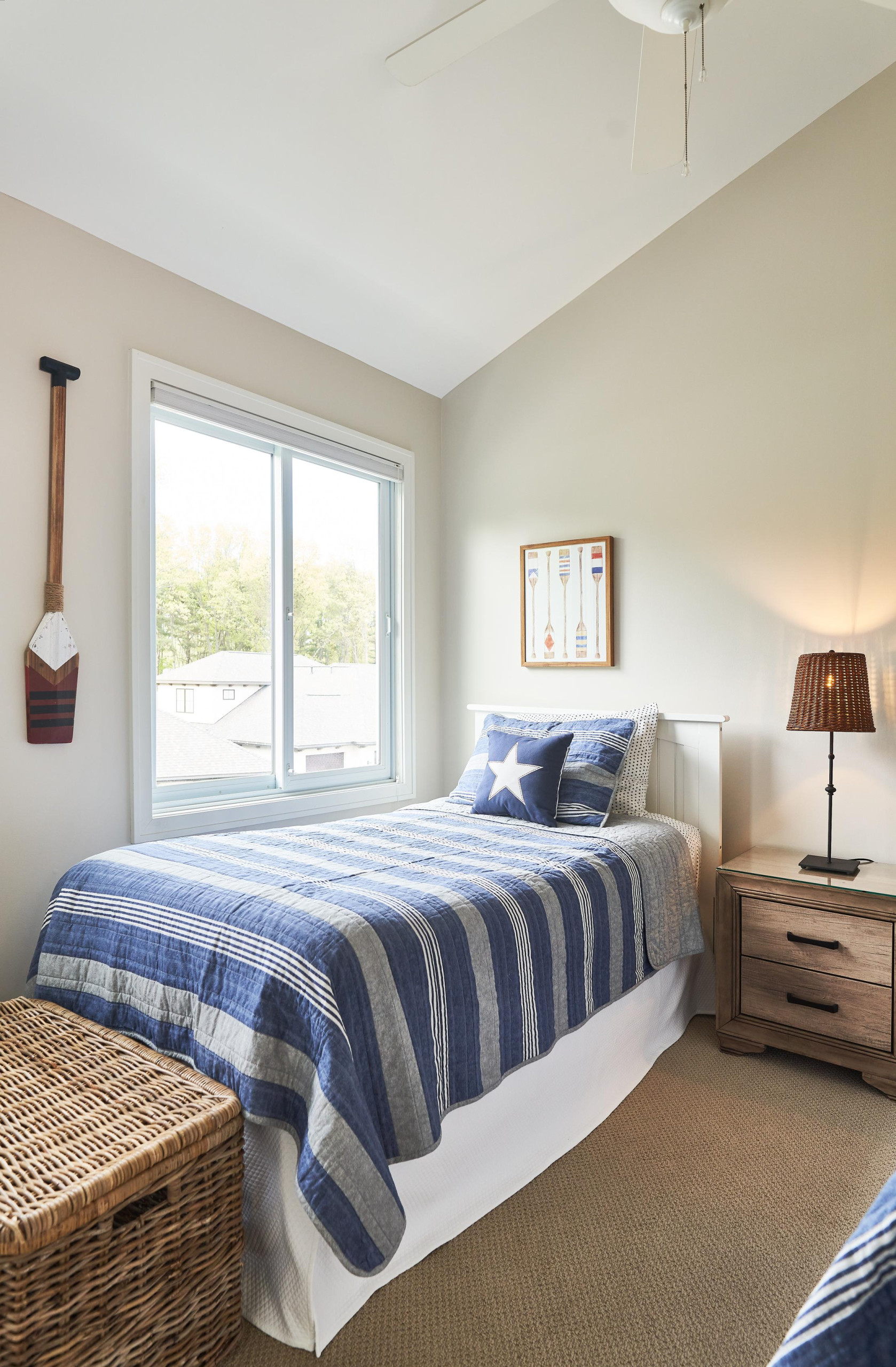 The second floor may also be closed off from the other floors and provides a fully equipped kitchen with a high-top bar and stools, dining table, fireplace, private bedroom with queen size bed, full bath, and living area (which includes a sleeper sofa (air coil for added comfort), not a sleeper chair as shown on floor plan). This level also features a balcony with a view of the pool and the beautiful Lake Macatawa.