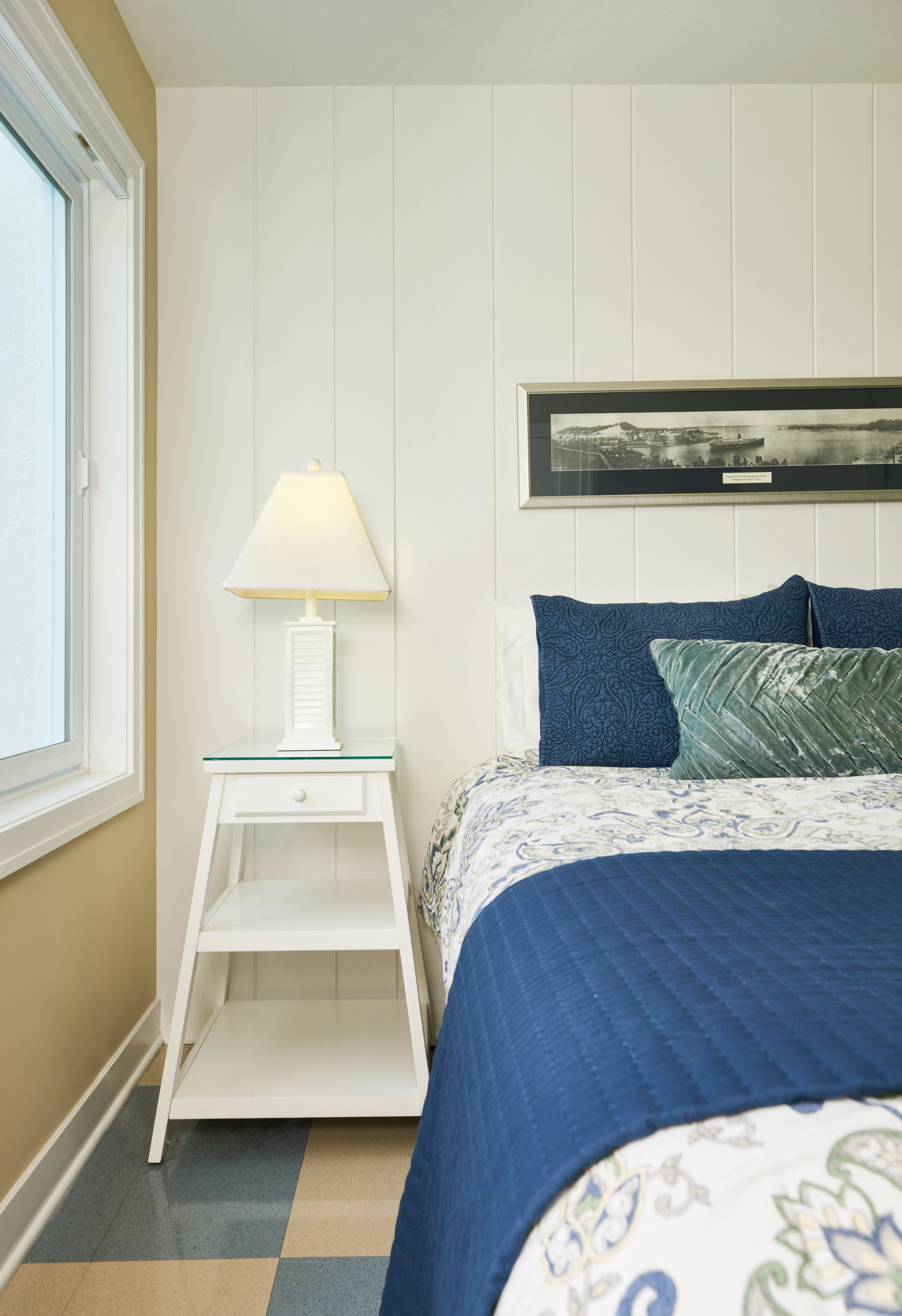 Jewel tones and bright chrome accents create a contemporary feel. The Newport has an outstanding view overlooking the pool. The Newport is one of 8 units offered by The Beach House at Lake Street.