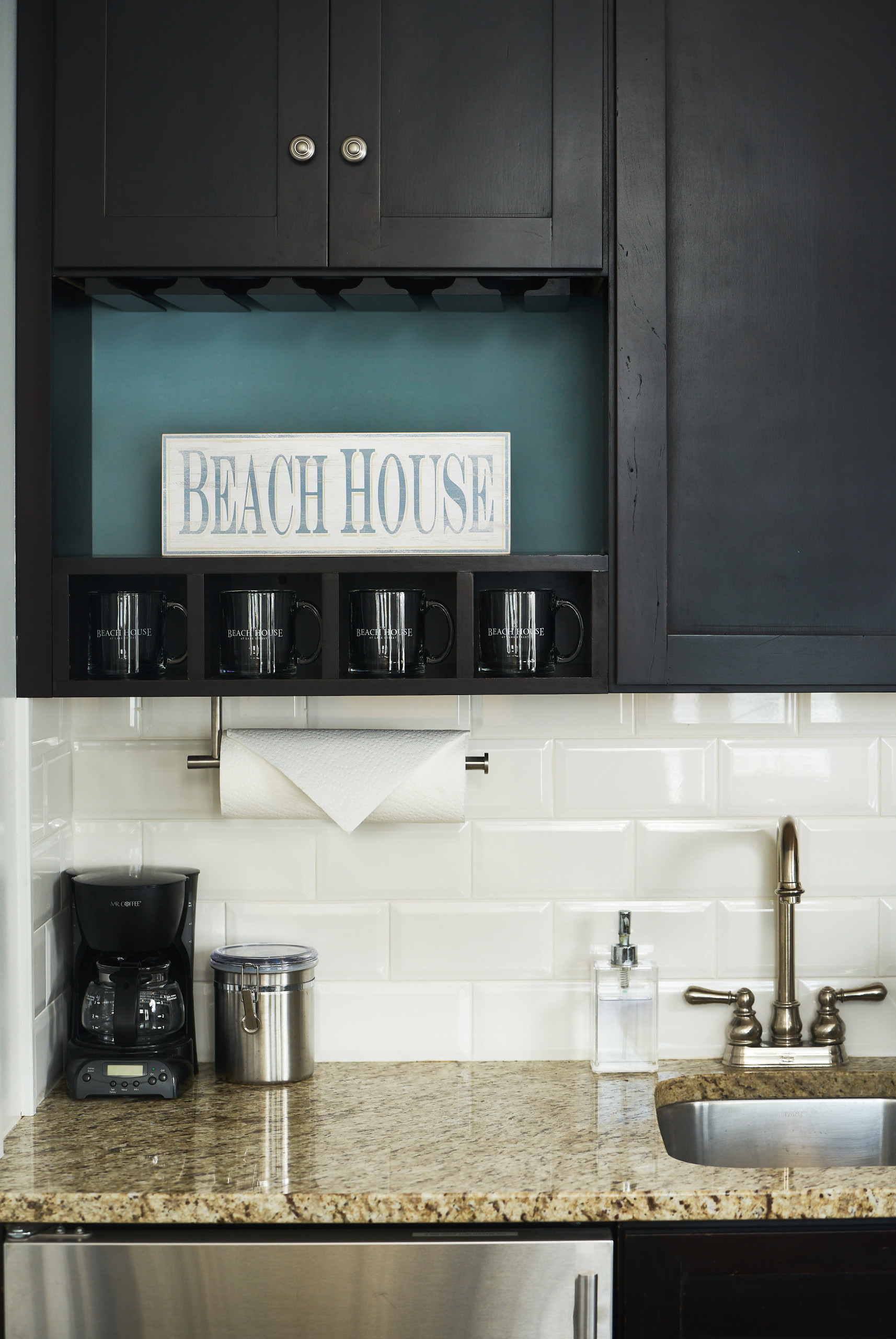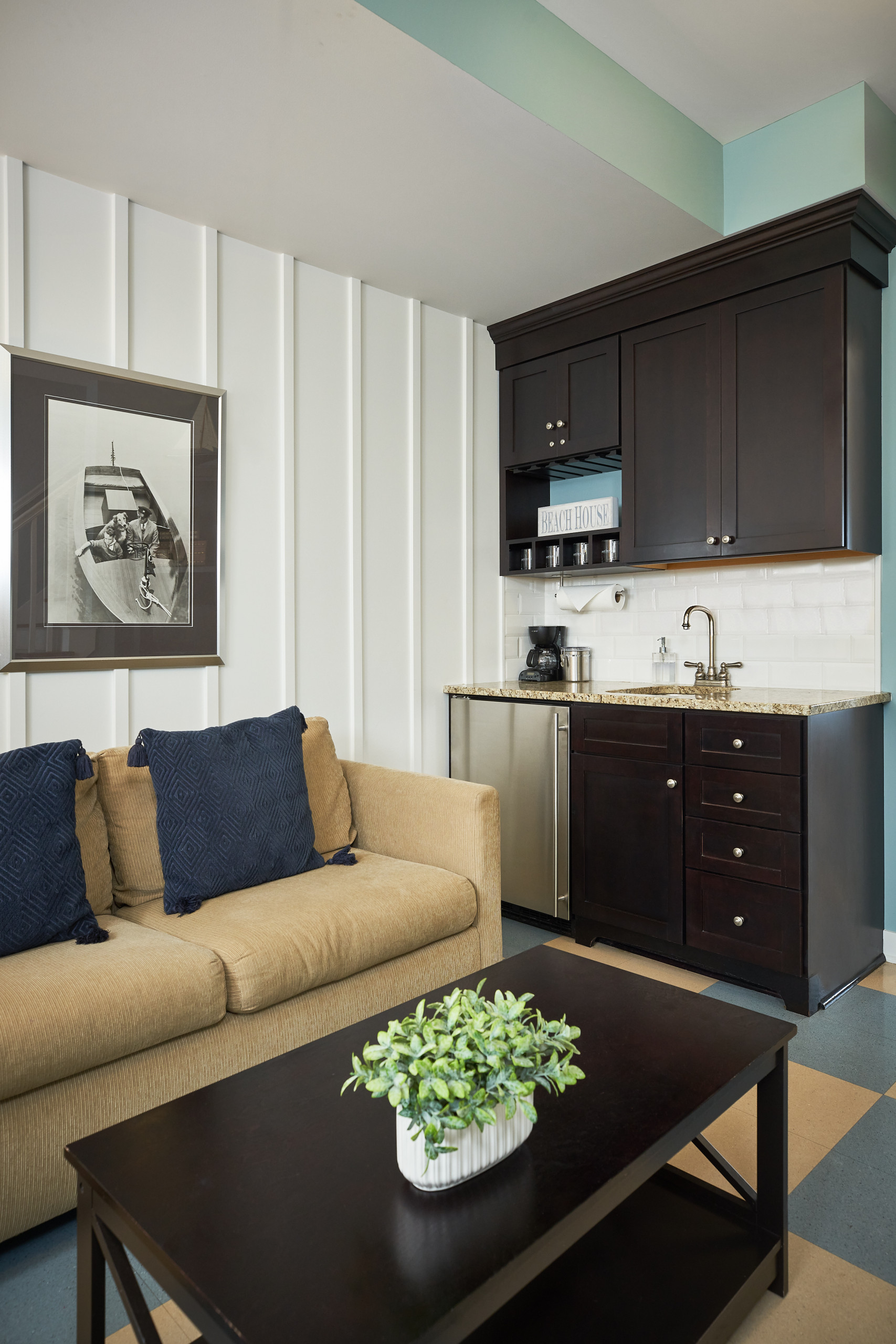 • First floor coffee/wet bar area with sink and mini refrigerator